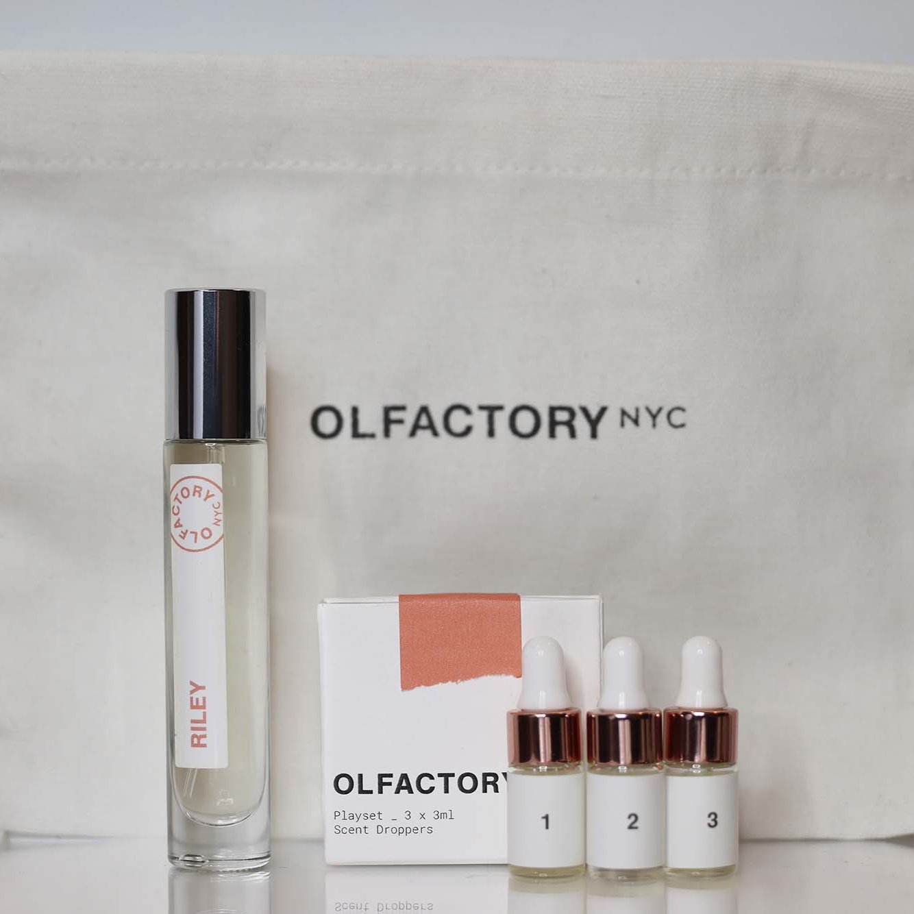 Each Playset includes three 3ml droppers containing specially designed fragrance accords, created to layer on top of Riley: